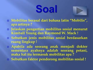 Mobilitas sosial berdasarkan ruang lingkup. Dari pembentukan kata mobilitas sosial berasal dari kata mobilitas dan sosial. 7 Juni 2022 0509 Diperbarui.